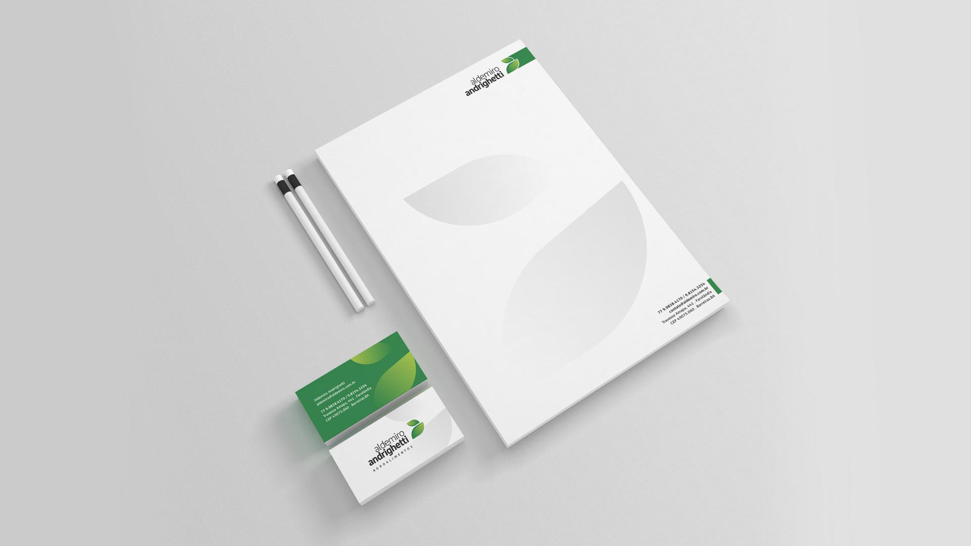 Identidade visual desenvolvida para o Sr. Aldemiro, onde produz e comercializa grãos, fibras e frutas na região Centro-Oeste da Bahia. Sua marca tinha que ser corporativa por ser produtor e ao mesmo tempo de produtor para o comercio. A solução foi trabalhar um ícone forte e de fácil entendimento, já que seu nome é extenso.