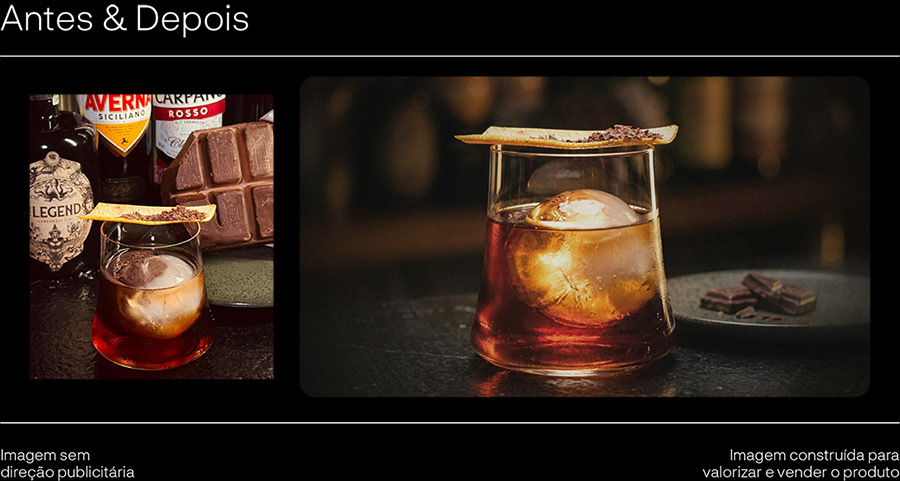 Construímos a imagem com olhar publicitário, ajustando luz, textura e composição para gerar mais impacto e aumentar o valor percebido do produto.